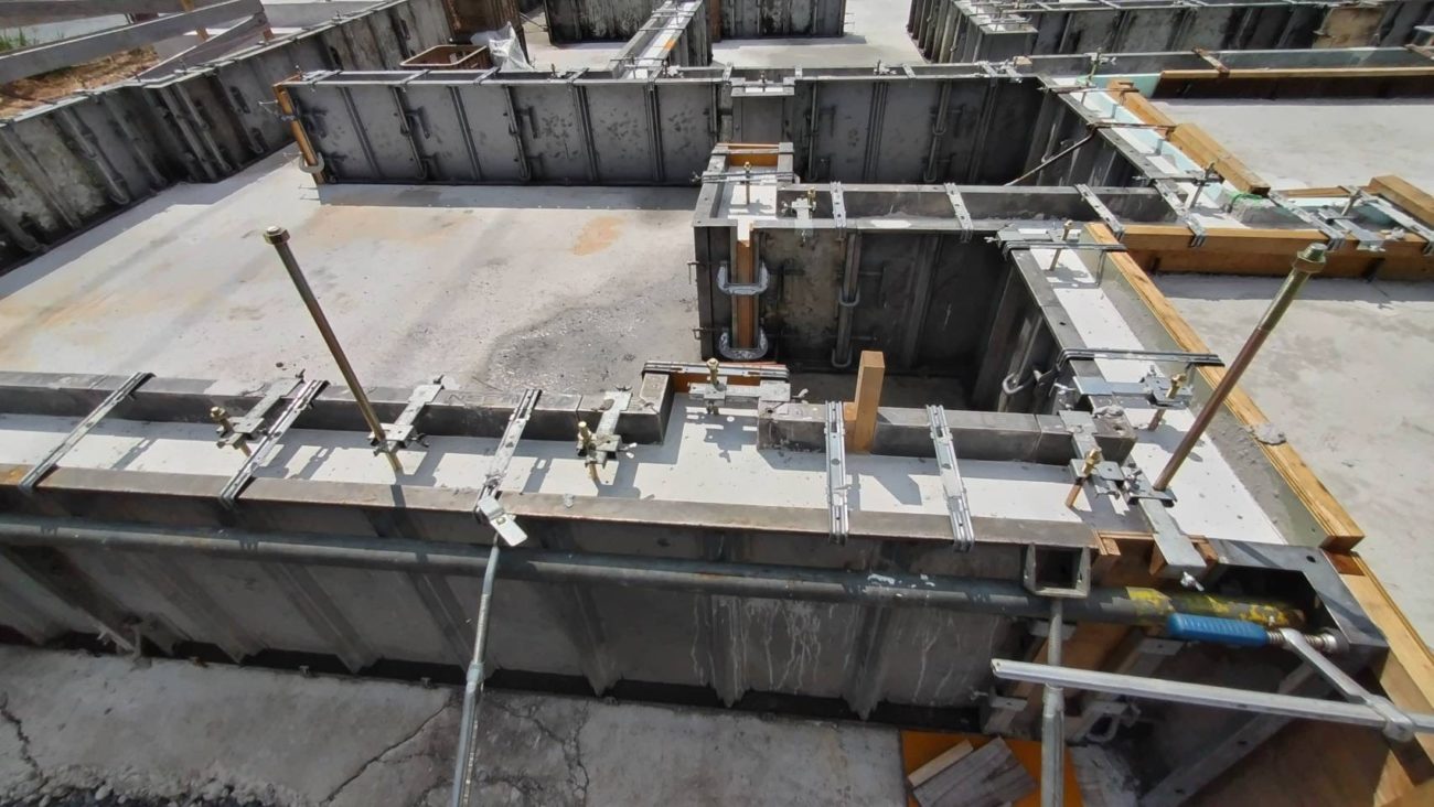 底盤の施工が終わると、立ち上がりと呼ばれる部分の型枠を組んでいきます。