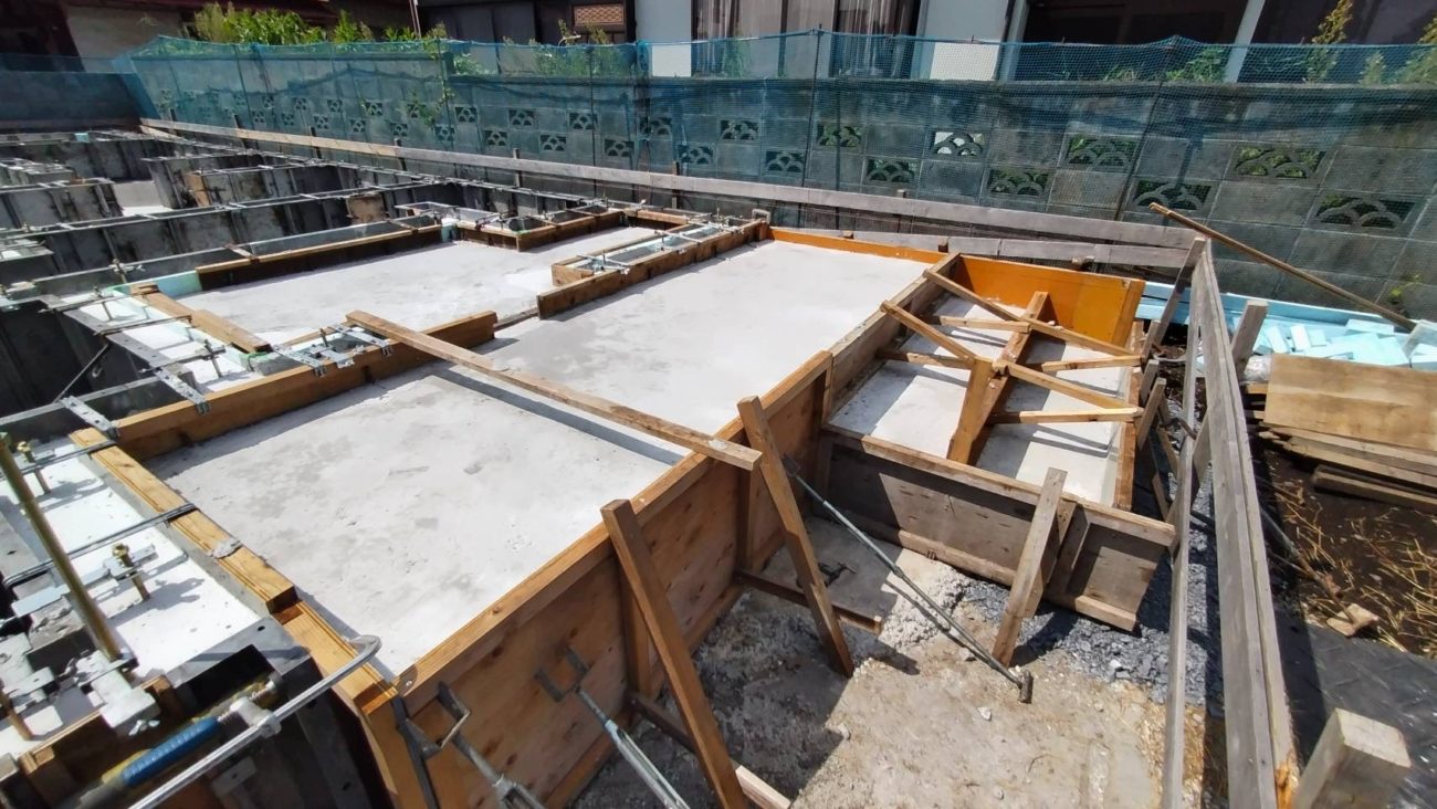 最後に、立ち上がりの一番上の面が水平になるように仕上げの材料を施工して型枠を外すと、基礎の完成です!