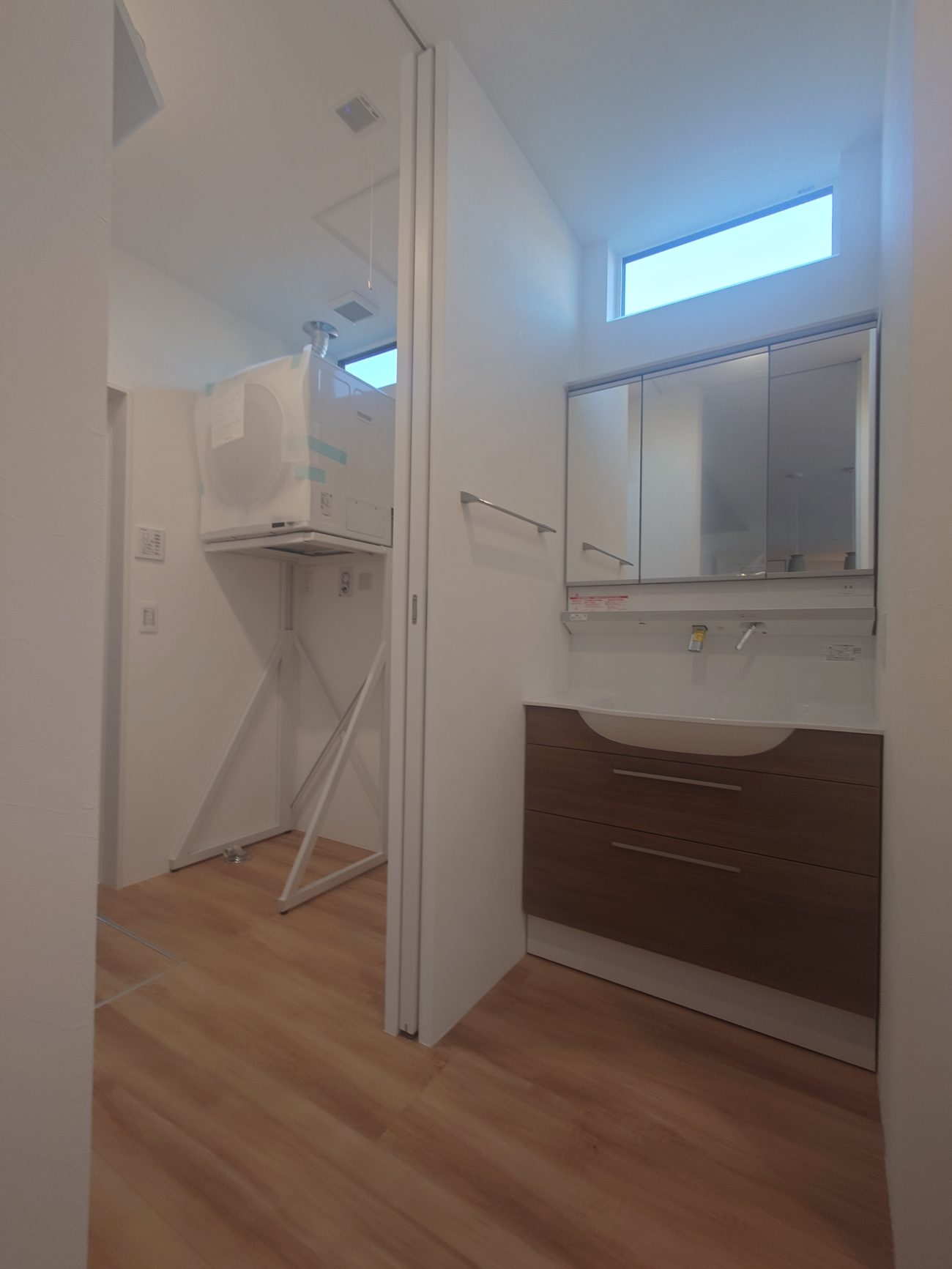 トイレ、洗面、脱衣、お風呂と並んでおり水回りの導線をまとめて家事を楽にする工夫がされています