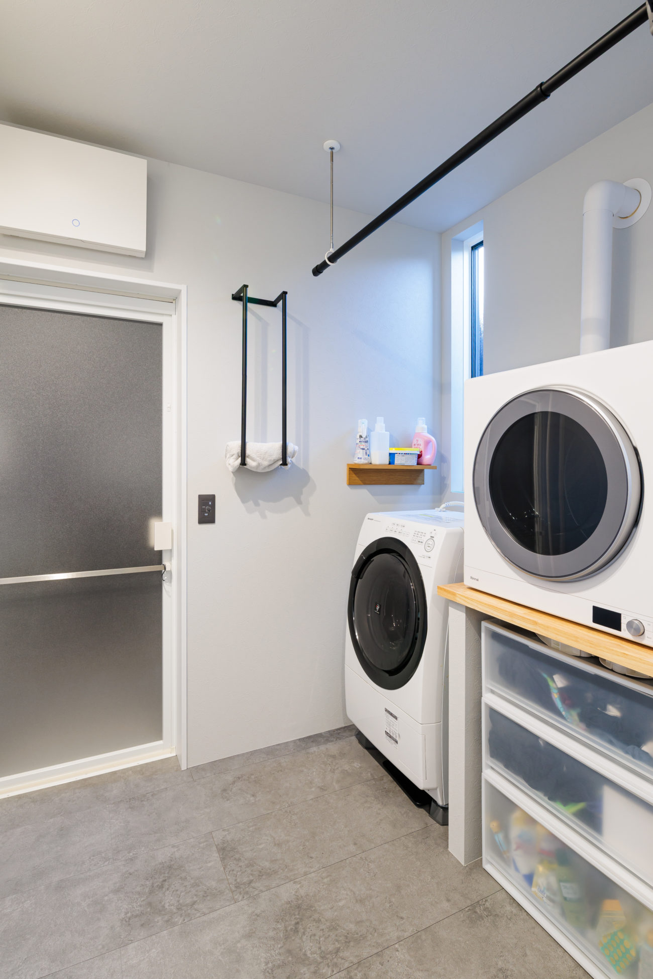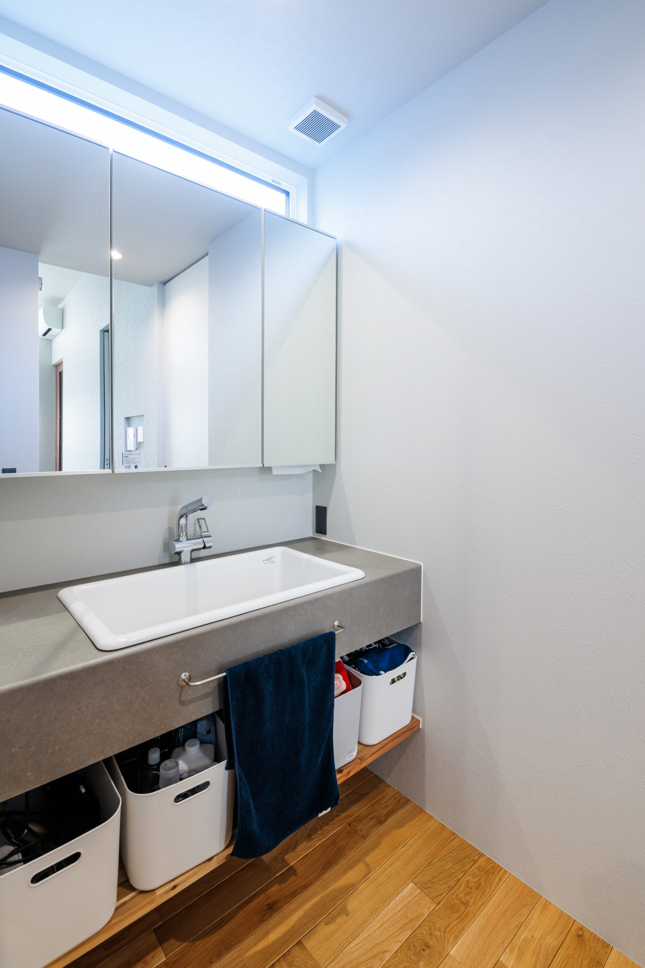 続いてキッチン後方にはすぐに洗面、脱衣、お風呂と並んでおり水回りの導線をまとめて家事を楽にする工夫がされています。