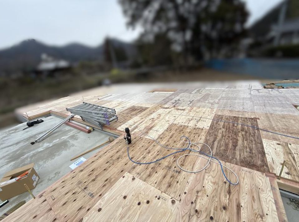 最後に、床材の下地になる合板(木材の板)を施工します。