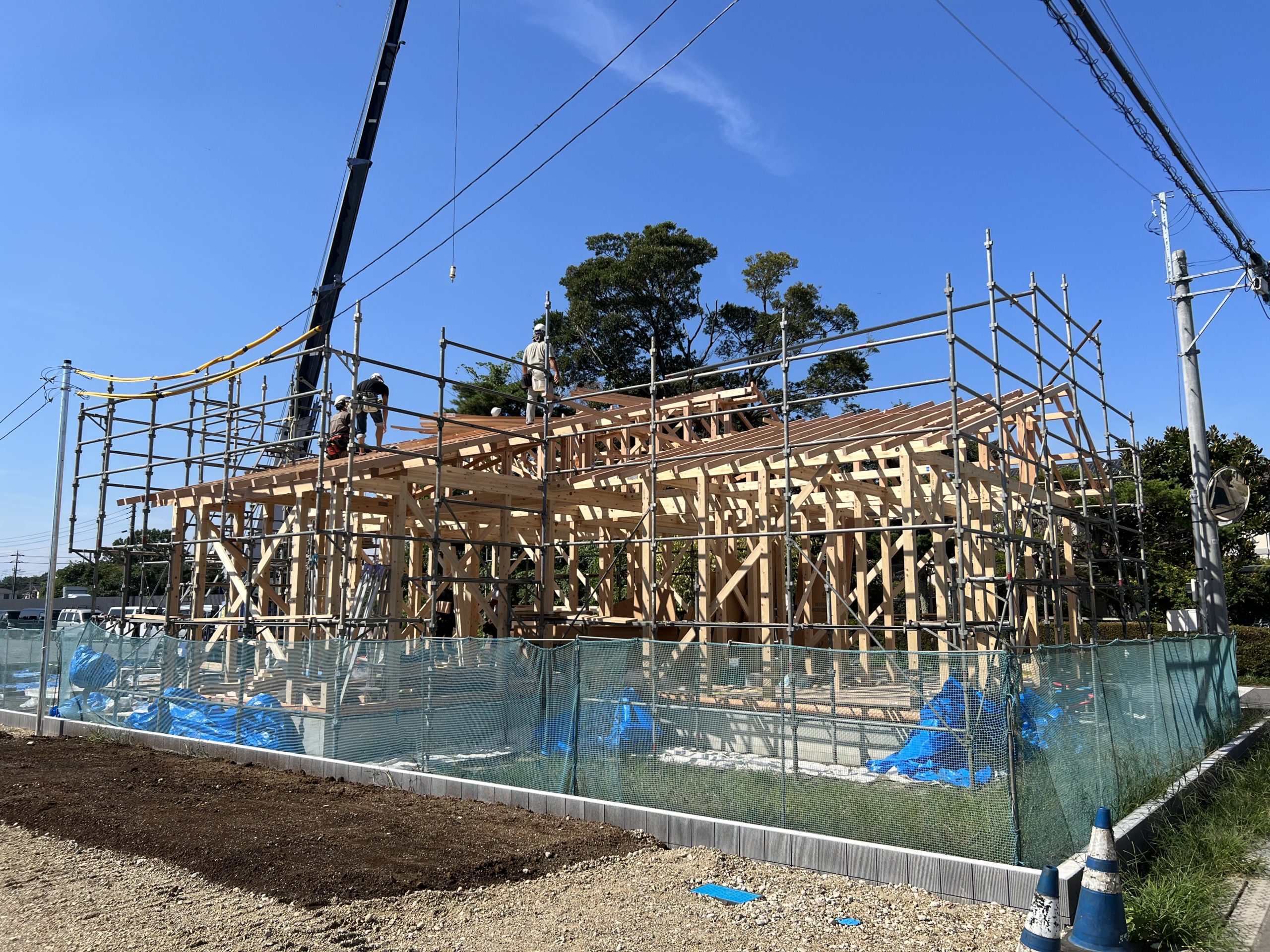 基礎現場から工事が進み、こちらは棟上げの現場です。